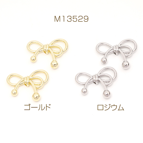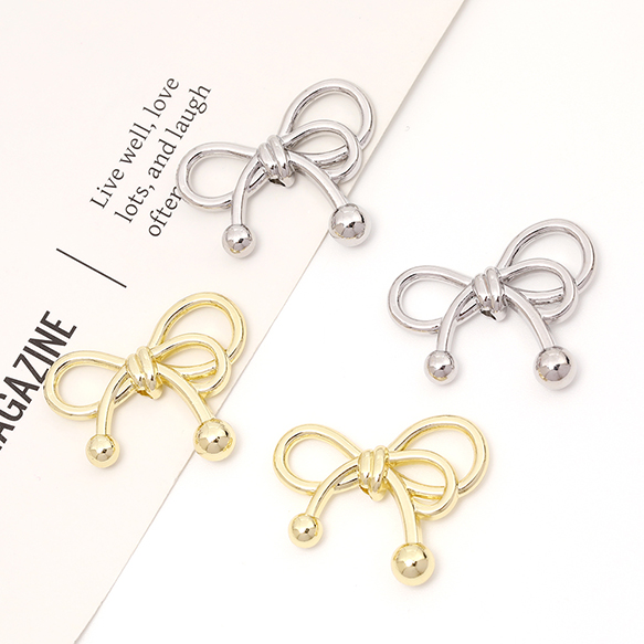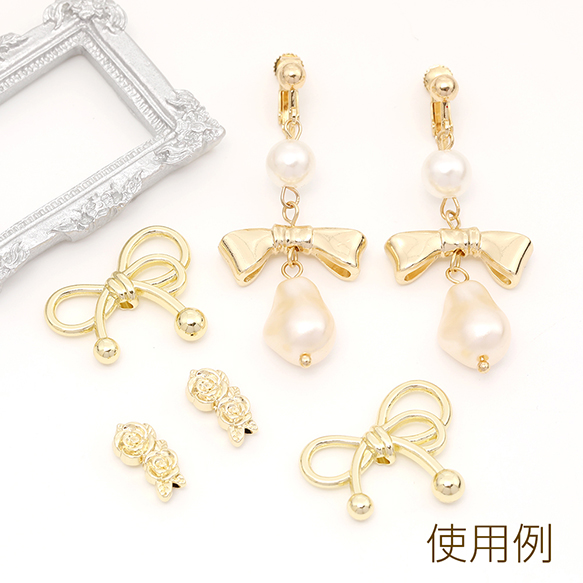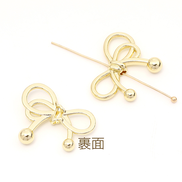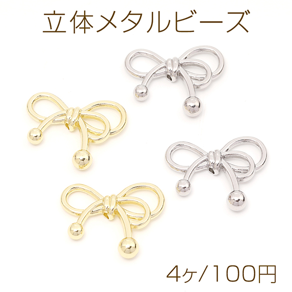 立体メタルビーズ リボンモチーフ メタリックビーズ 合金製 縦穴 約21×25mm(4ヶ)