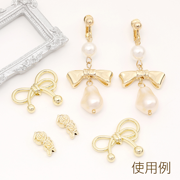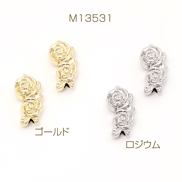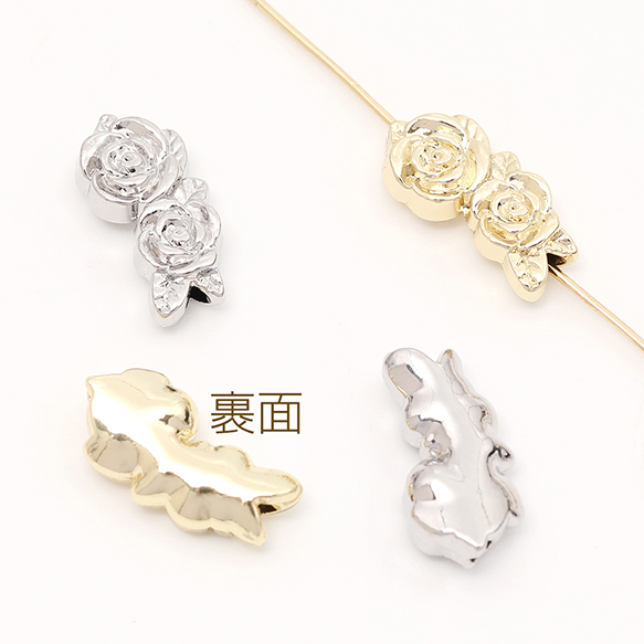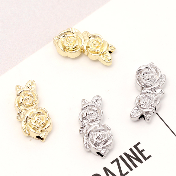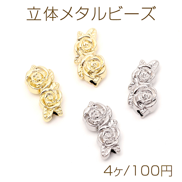 立体メタルビーズ バラモチーフ メタリックビーズ 合金製 通し穴あり 約7×14mm(4ヶ)