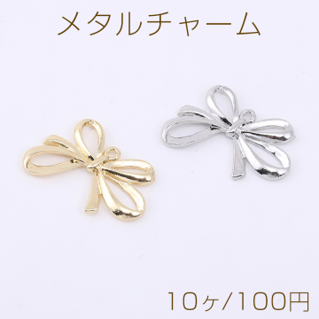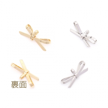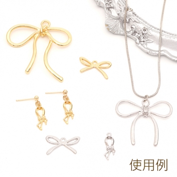 立体メタルチャーム メタルリボンチャーム メタルりぼんチャーム 立体リボンチャーム 1カン付き 約17×28mm(4ヶ)