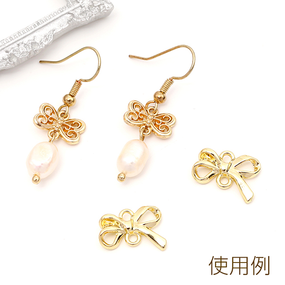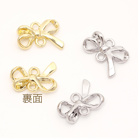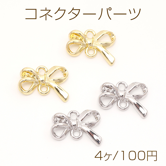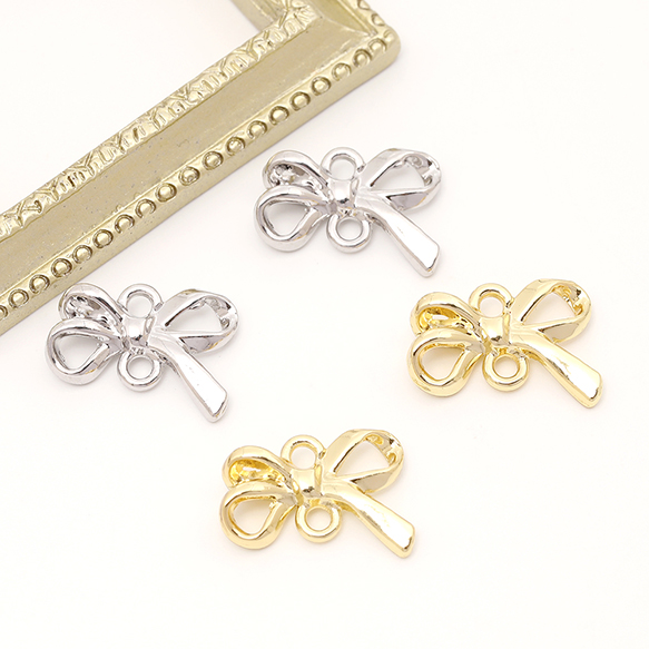 コネクターパーツ リボンモチーフ リボンコネクターチャーム つなぎパーツ 上下2カン付き 約11×15mm(4ヶ)