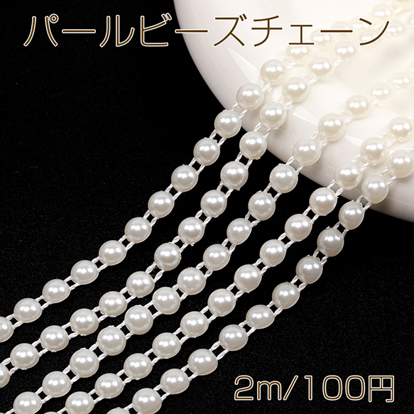 パールビーズチェーン ABS樹脂製 アイボリー 幅約6mm カット売り2m単位