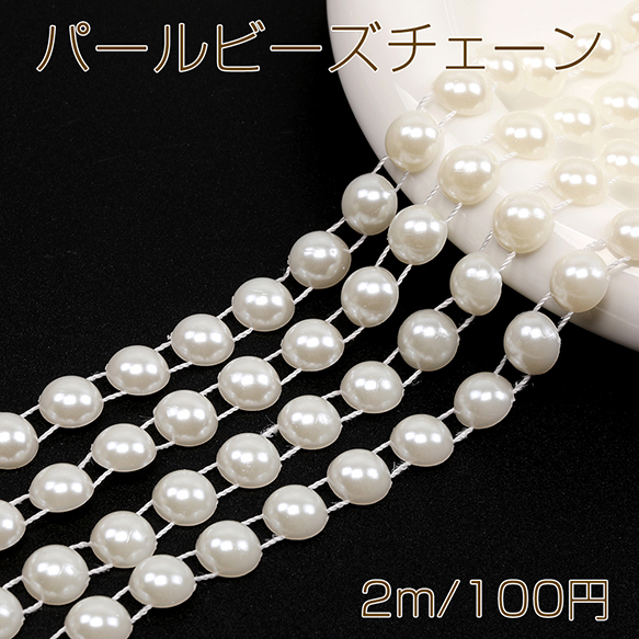 パールビーズチェーン ABS樹脂製 アイボリー 幅約10mm カット売り2m単位