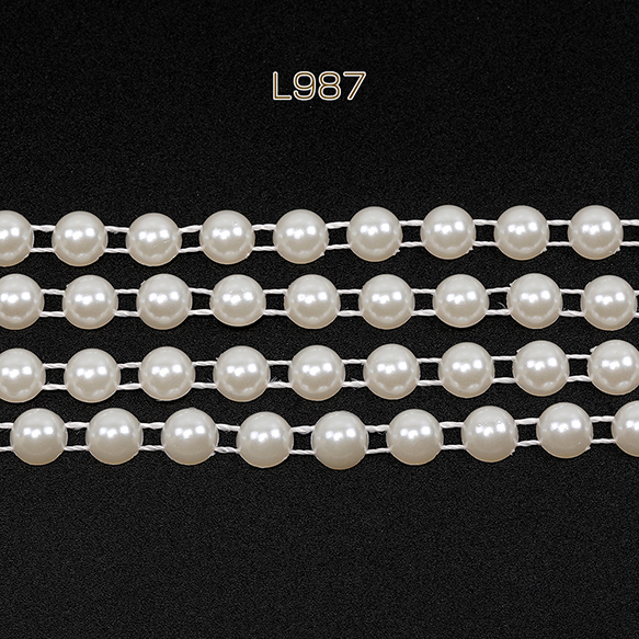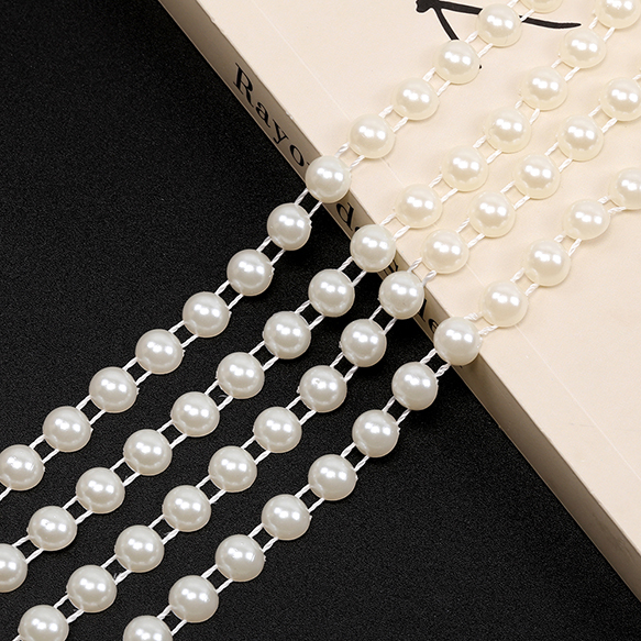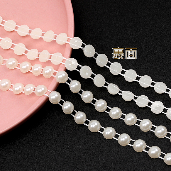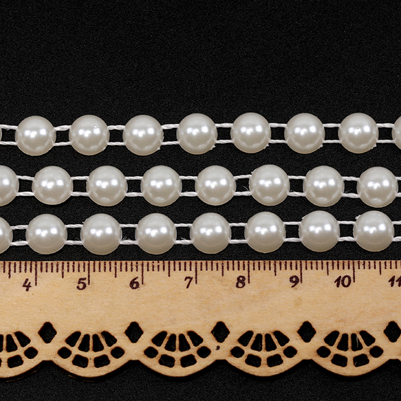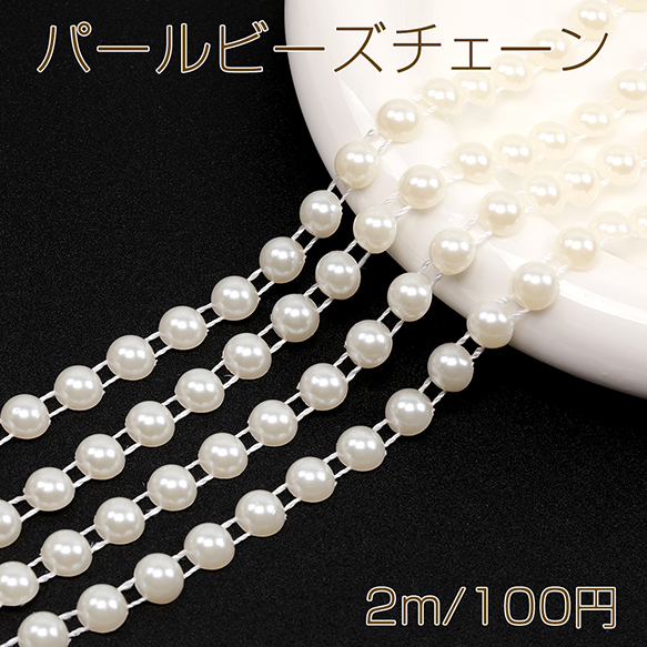 パールビーズチェーン ABS樹脂製 アイボリー 幅約8mm カット売り2m単位