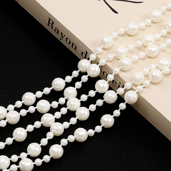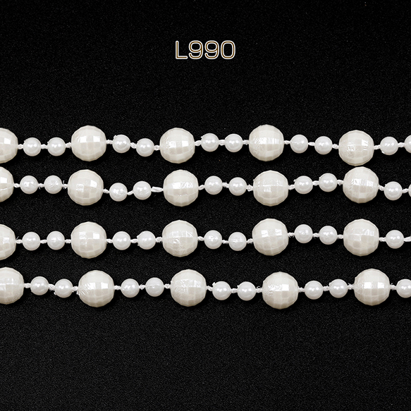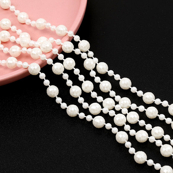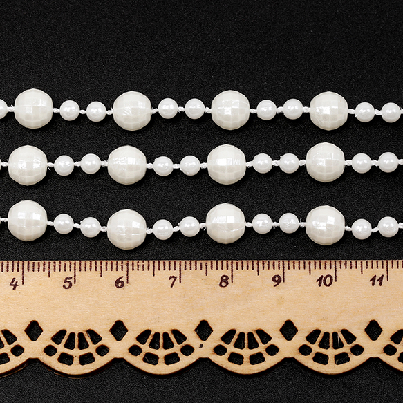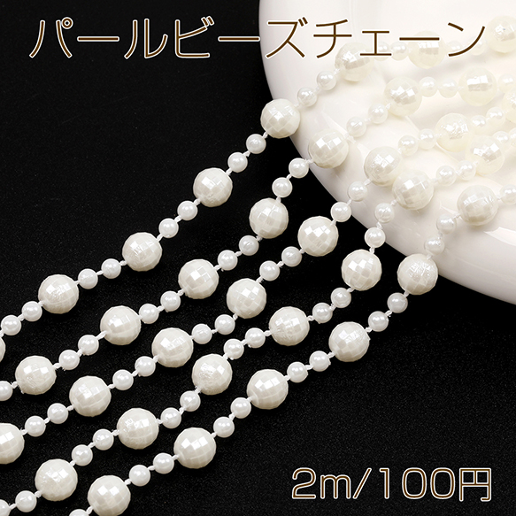 パールビーズチェーン ABS樹脂製 アイボリー 幅約8mm&4mm カット売り2m単位