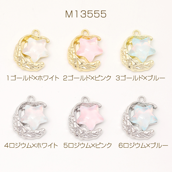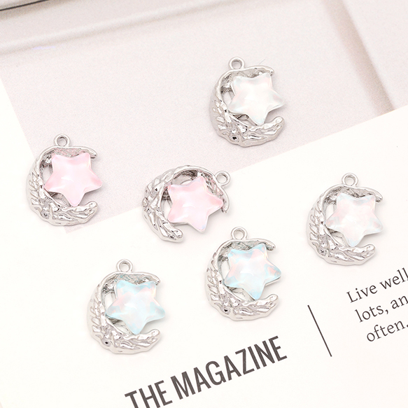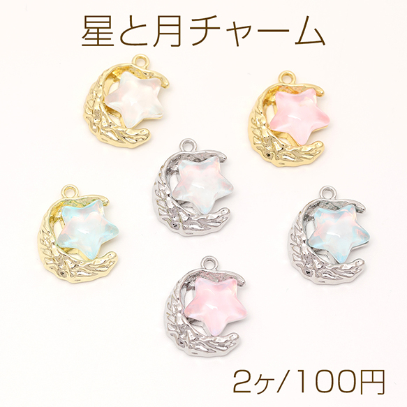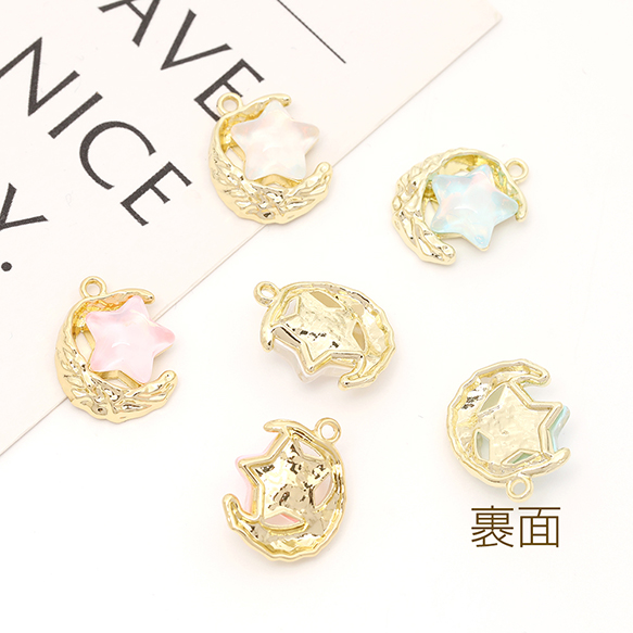 星と月チャーム フレームガラスチャーム ガラスストーンチャーム 1カン付き オーロラカラー 約13×17mm(2ヶ)