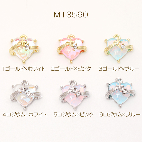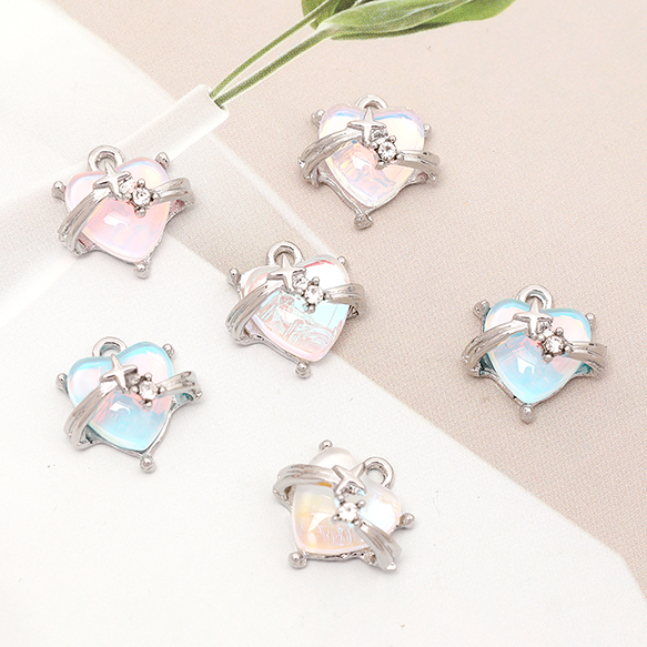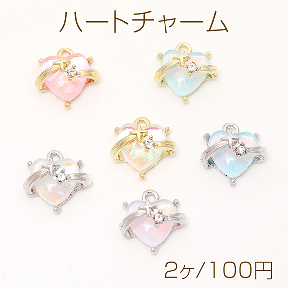 ハートチャーム フレームガラスチャーム ガラスストーンチャーム 1カン付き オーロラカラー 約13×13mm(2ヶ)