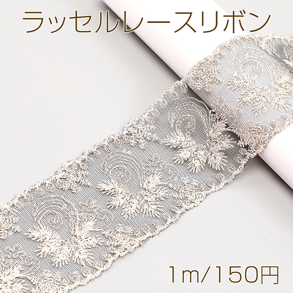 ラッセルレースリボン ポリエステルリボン レースリボン 服飾資材 ラッピングリボン 手作りヘアリボン 幅約7.5cm(1m)