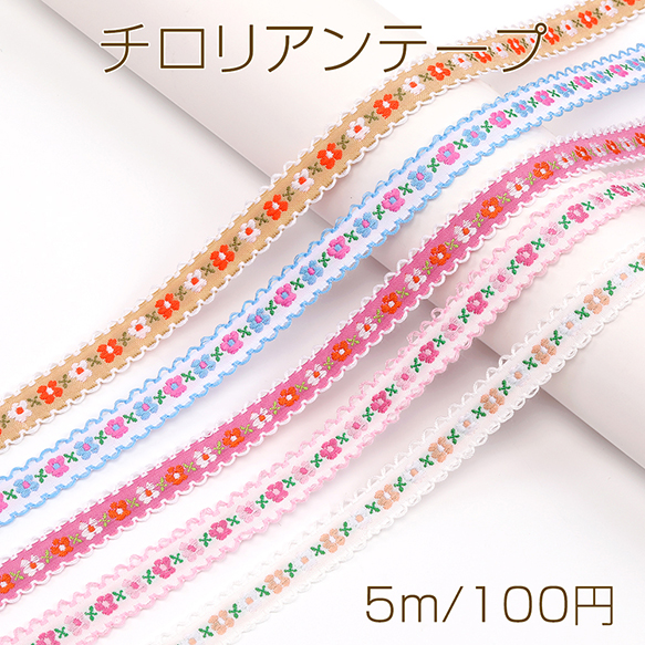 チロリアンテープ ポリエステルリボン テープリボン 服飾資材 ラッピングリボン 手作りヘアリボン 幅約1.3cm(5m)