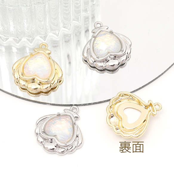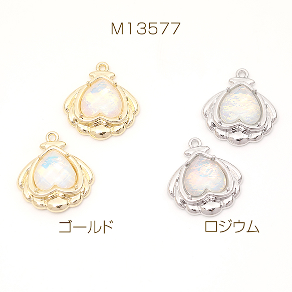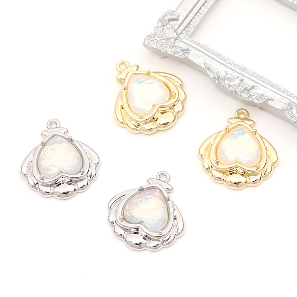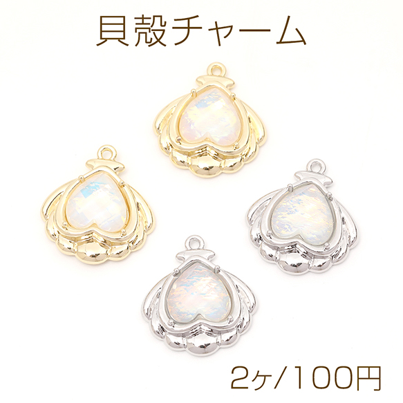 貝殻チャーム ホタテチャーム ハート樹脂チャーム メタルチャーム オーロラカラー 1カン付き 約18×20mm(2ヶ)