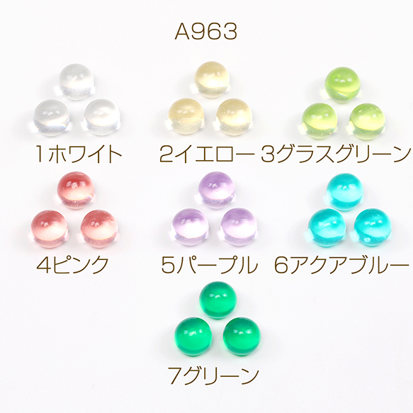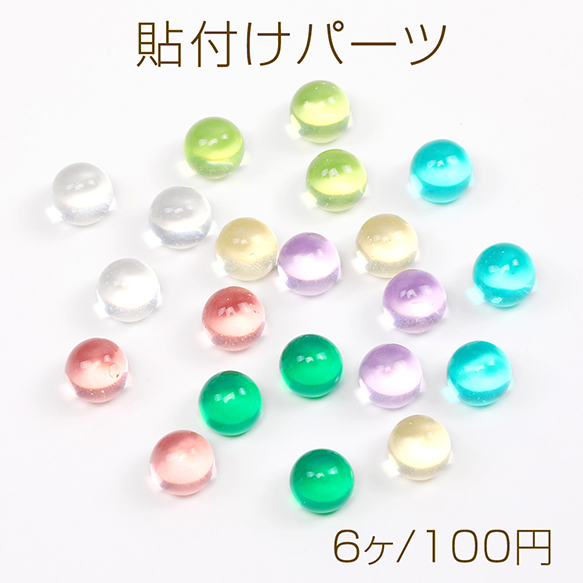 貼付けパーツ 丸型パーツ カボション 樹脂製 立体モチーフデコパーツ デコレーションパーツ 約9mm(6ヶ)