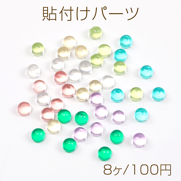貼付けパーツ 丸型パーツ カボション 樹脂製 立体モチーフデコパーツ デコレーションパーツ 約6mm(8ヶ)