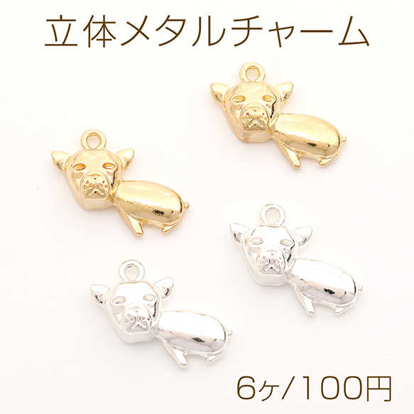 立体メタルチャーム 犬チャーム ドッグチャーム ドッグメタルチャーム 犬メタルチャーム 1カン付き 約9×17mm(6ヶ)