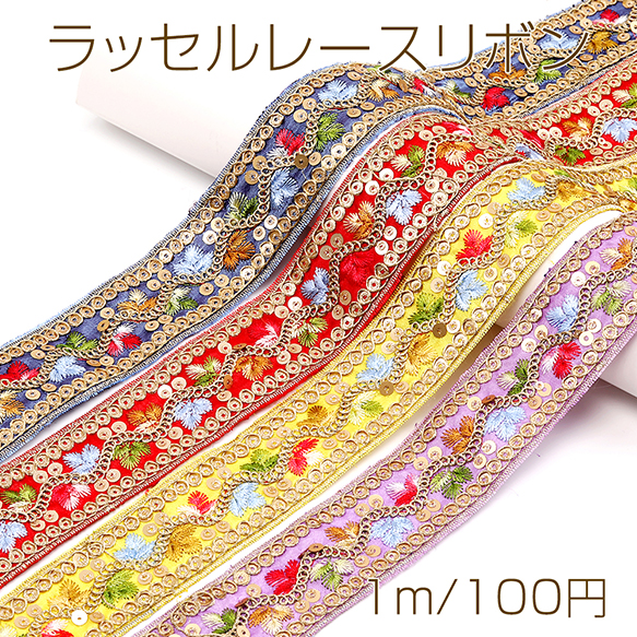 ラッセルレースリボン ポリエステルリボン レースリボン 服飾資材 ラッピングリボン 手作りヘアリボン 幅約3.5cm(1m)