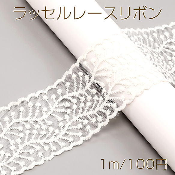 ラッセルレースリボン ポリエステルリボン レースリボン 服飾資材 ラッピングリボン ベージュ 幅約7cm(1m)
