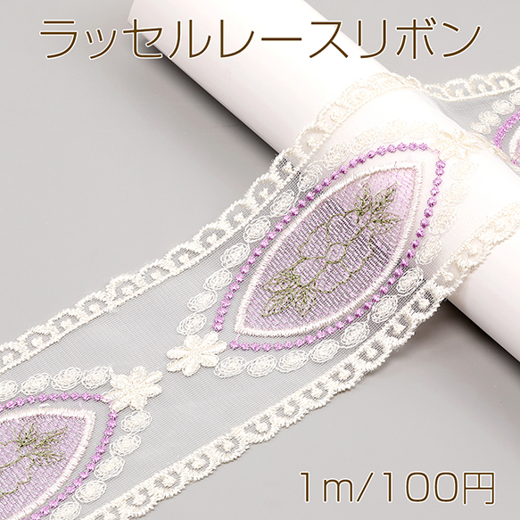 ラッセルレースリボン ポリエステルリボン レースリボン 服飾資材 ラッピングリボン 手作りヘアリボン 幅約9cm(1m)