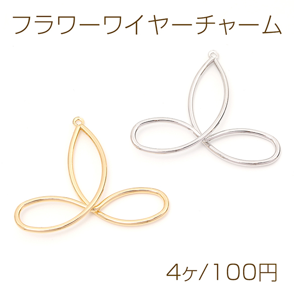 フラワーワイヤーチャーム お花のワイヤーチャーム フラワーワイヤーパーツ 三弁花 1カン付き 約34×40mm(4ヶ)