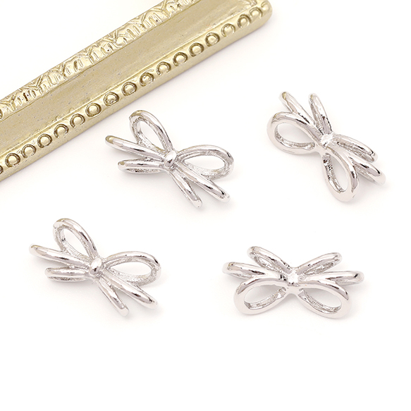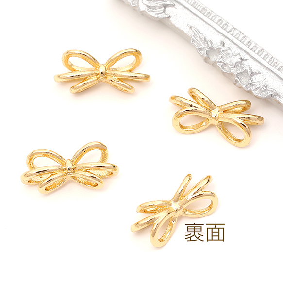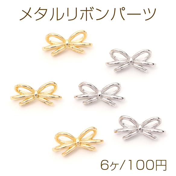 メタルリボンパーツ 立体 リボンチャーム ポニーフック用リボンパーツ 貼付け可 約7×15mm(6ヶ)