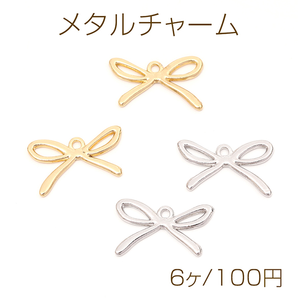 メタルチャーム メタルリボンチャーム メタルりぼんチャーム リボンメタルチャーム 1カン付き 約13×20mm(6ヶ)