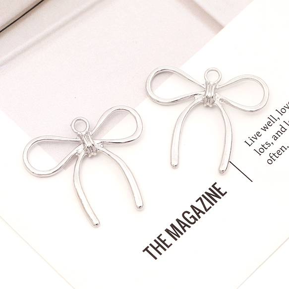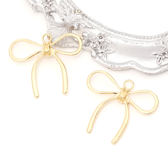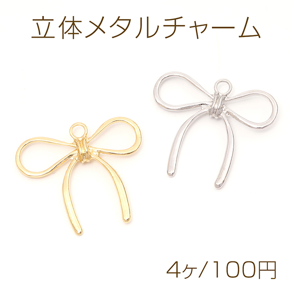 立体メタルチャーム メタルリボンチャーム メタルりぼんチャーム 立体リボンチャーム 1カン付き 約31×34mm(4ヶ)