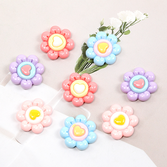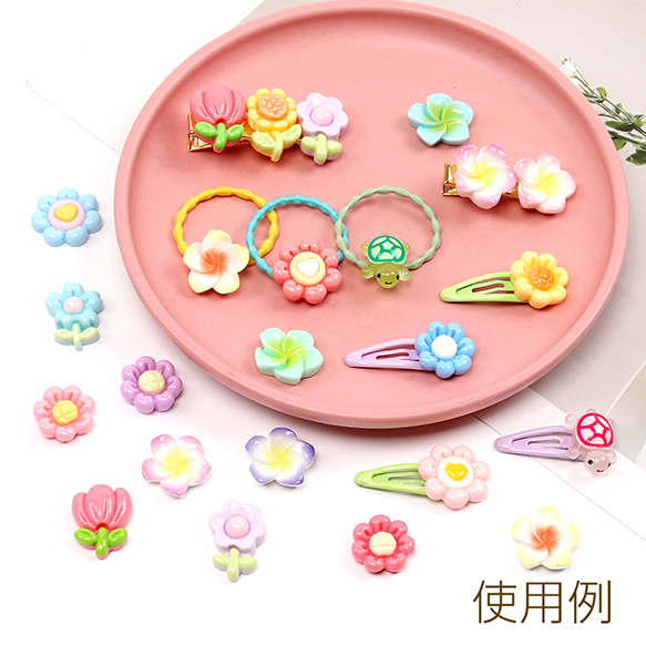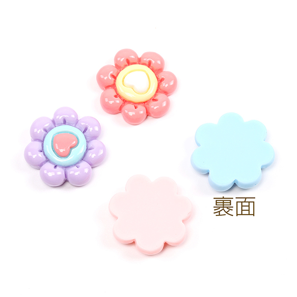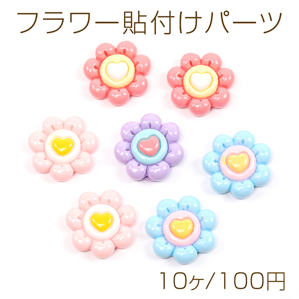 フラワー貼付けパーツ 樹脂製 立体花型パーツ フラワーモチーフデコパーツ 約20mm(10ヶ)