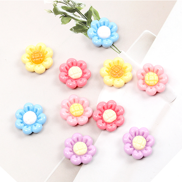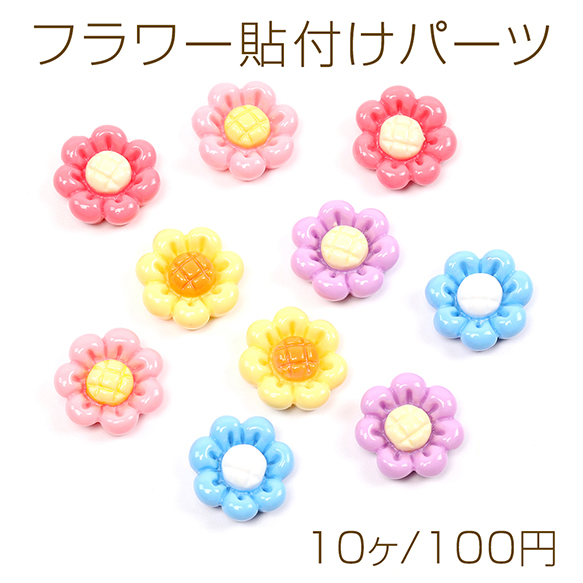フラワー貼付けパーツ 樹脂製 立体花型パーツ フラワーモチーフデコパーツ 約18mm(10ヶ)