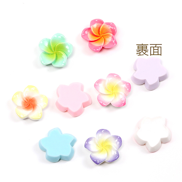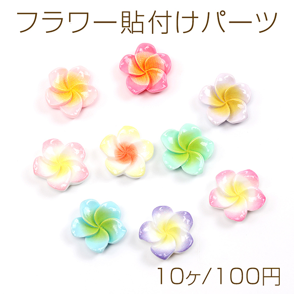 フラワー貼付けパーツ 樹脂製 立体花型パーツ フラワーモチーフデコパーツ 約20mm(10ヶ)
