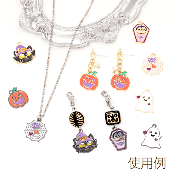 ハロウィンチャーム 猫チャーム キャットチャーム メタルエポチャーム 1カン付き 約19×20mm(6ヶ)