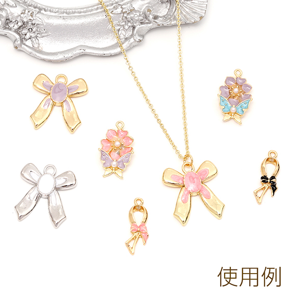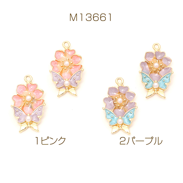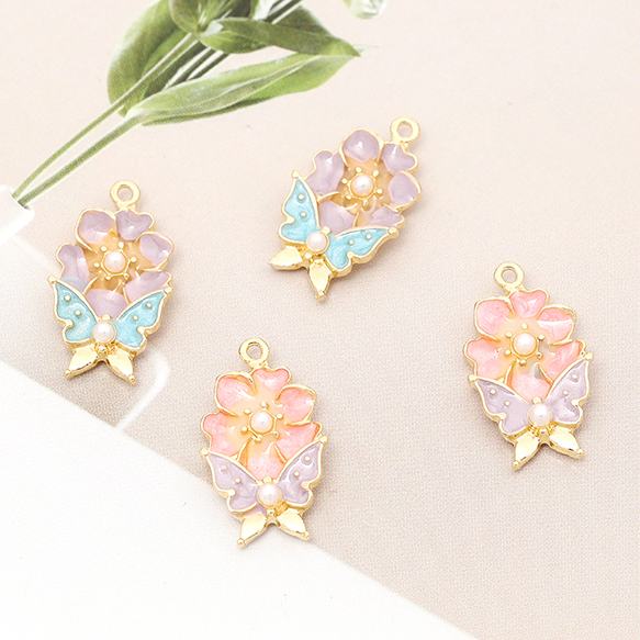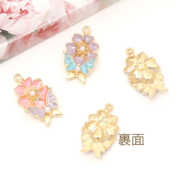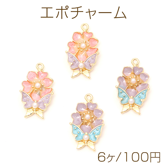 エポチャーム エポ蝶とフラワーチャーム メタル蝶とフラワーチャーム パール付き 1カン付き ゴールド 約11×18mm(6ヶ)