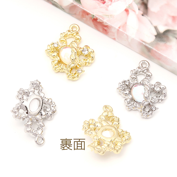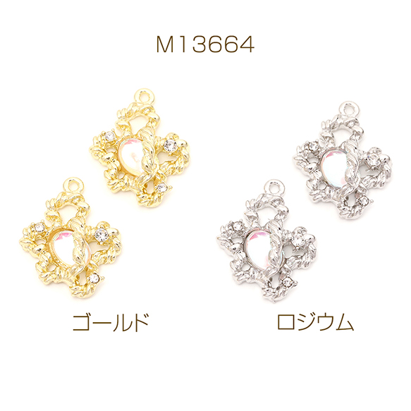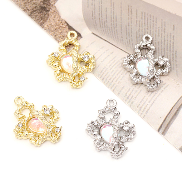 フラワーチャーム フレームガラスチャーム ガラスストーンチャーム 1カン付き オーロラカラー 約18×23mm(2ヶ)