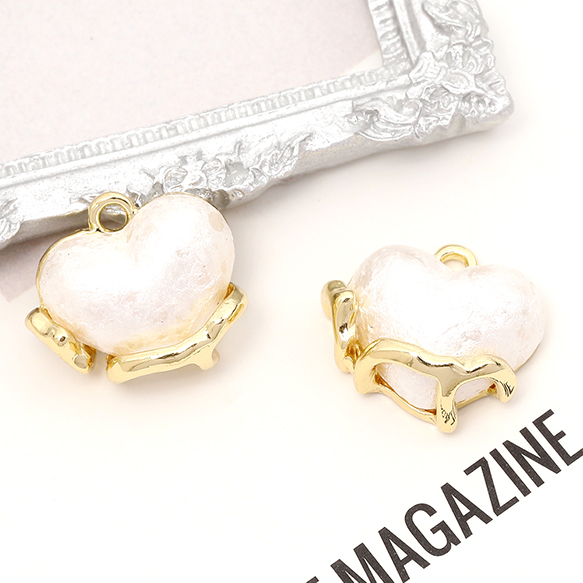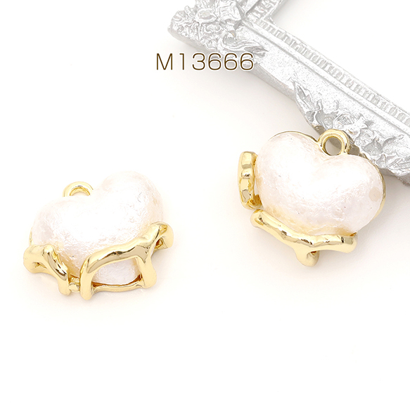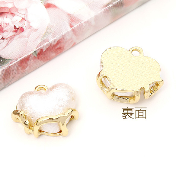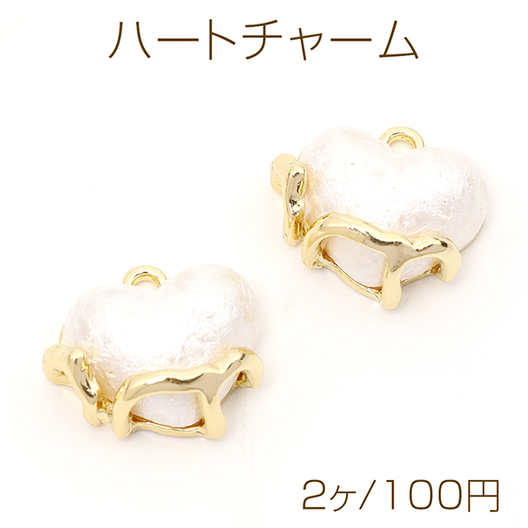 ハートチャーム ハート型樹脂チャーム メタルチャーム ハートモチーフ 1カン付き ゴールド 約15×17mm(2ヶ)