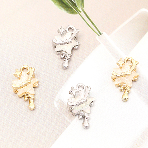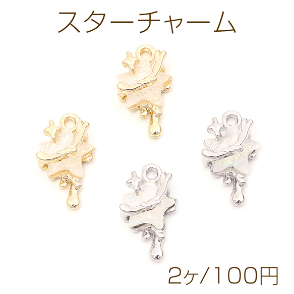 スターチャーム 星形樹脂チャーム メタルチャーム スターモチーフ 1カン付き 約10×18mm(2ヶ)