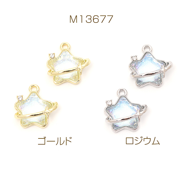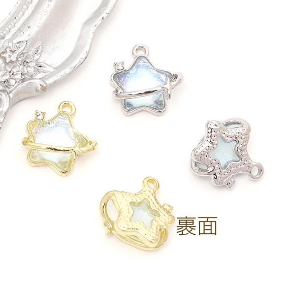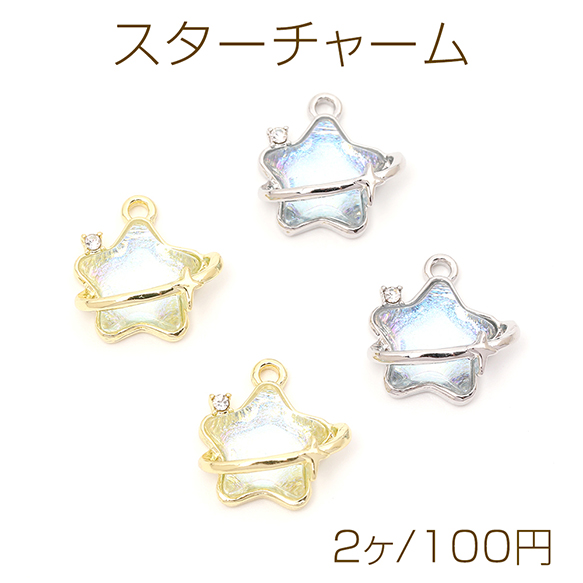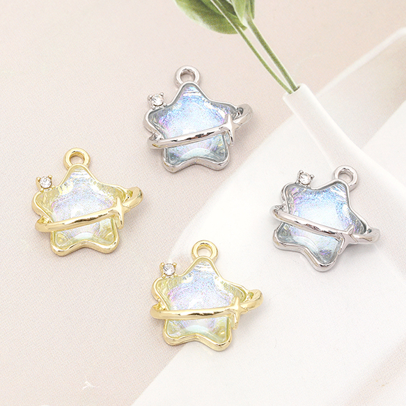 スターチャーム 星型樹脂チャーム メタルチャーム スターモチーフ 1カン付き オーロラカラー 約16×16mm(2ヶ)