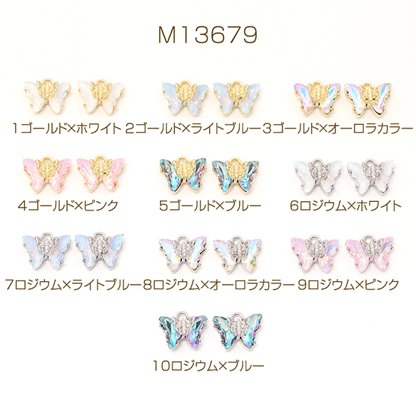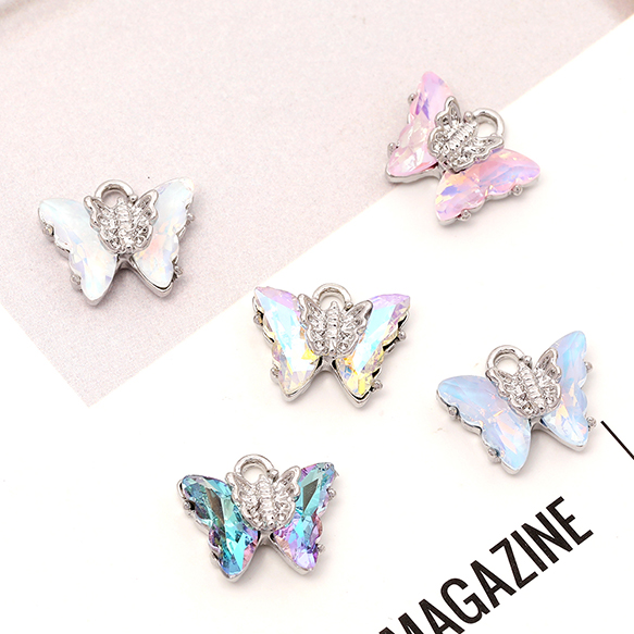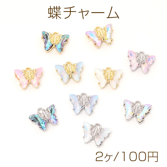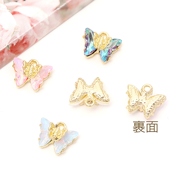蝶チャーム フレームガラスチャーム ガラスストーンチャーム 1カン付き オーロラカラー 約11×13mm(2ヶ)
