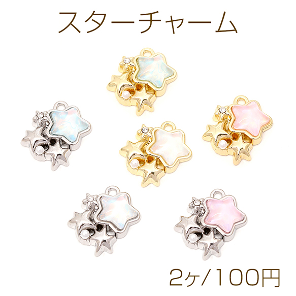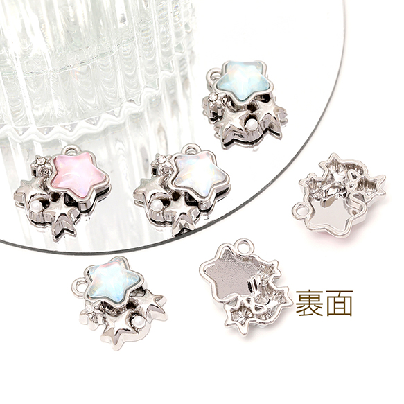 スターチャーム フレームガラスチャーム ガラスストーンチャーム 1カン付き オーロラカラー 約17×20mm(2ヶ)