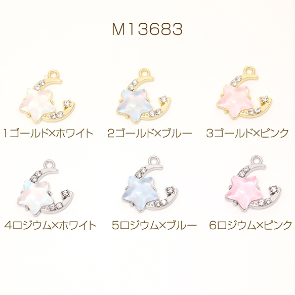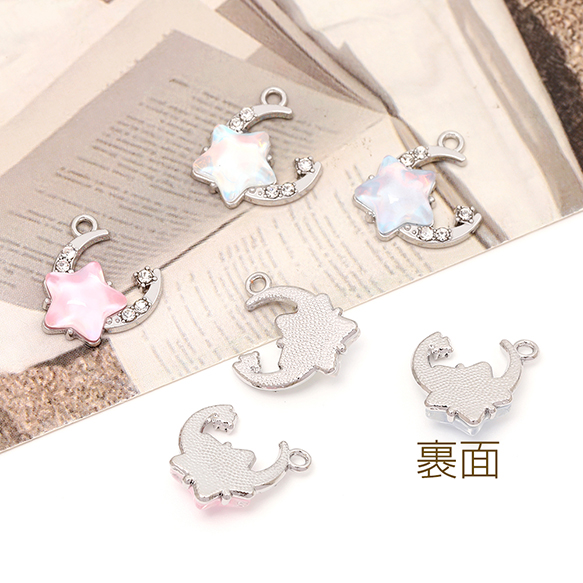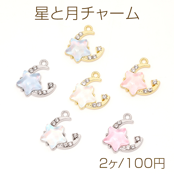 星と月チャーム フレームガラスチャーム ガラスストーンチャーム 1カン付き オーロラカラー 約16×16mm(2ヶ)