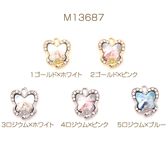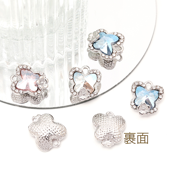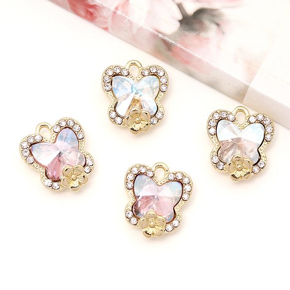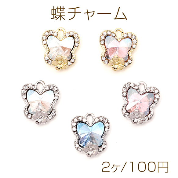蝶チャーム フレームガラスチャーム ガラスストーンチャーム 1カン付き オーロラカラー 約14×17mm(2ヶ)