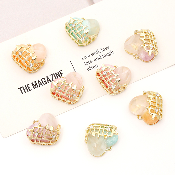 ハートチャーム 樹脂チャーム メタルチャーム 1カン付き グラデーションオーロラカラー ゴールド 約19×21mm(2ヶ)
