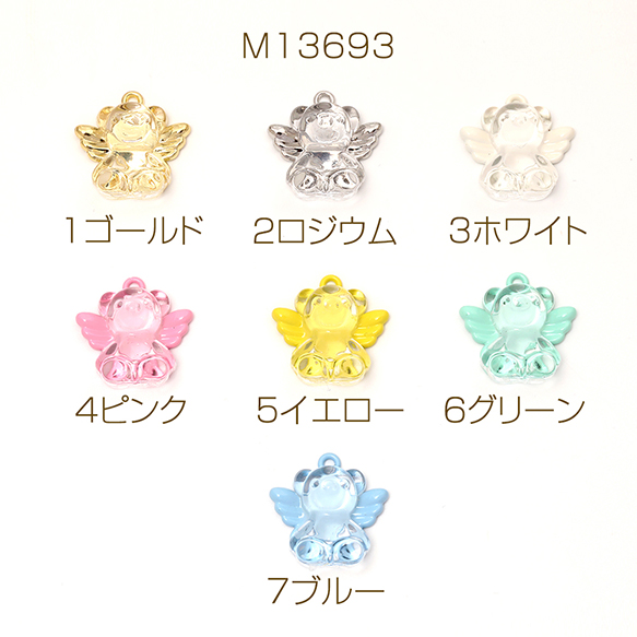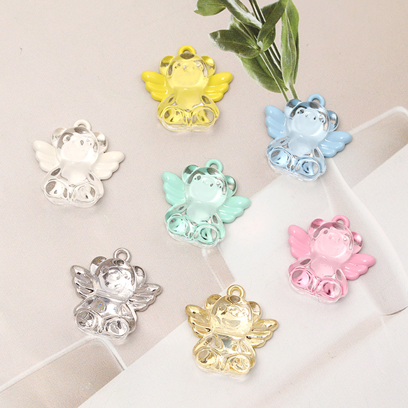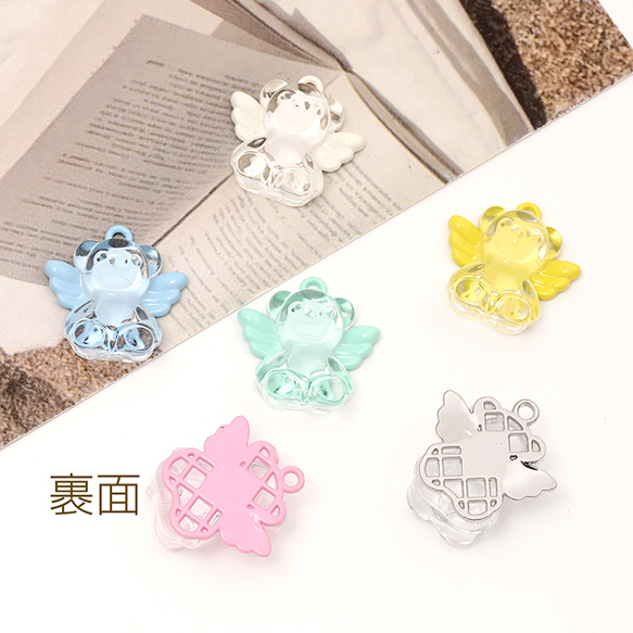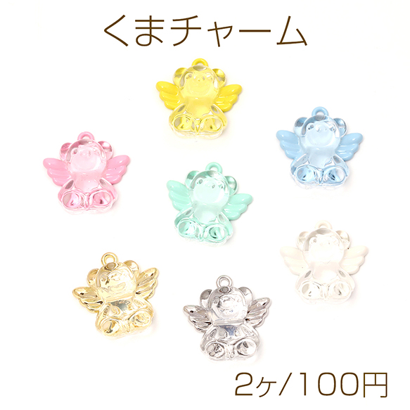 くまチャーム 樹脂チャーム メタルチャーム 天使の羽根 エンジェルつばさ くまモチーフ 1カン付き 約19×20mm(2ヶ)