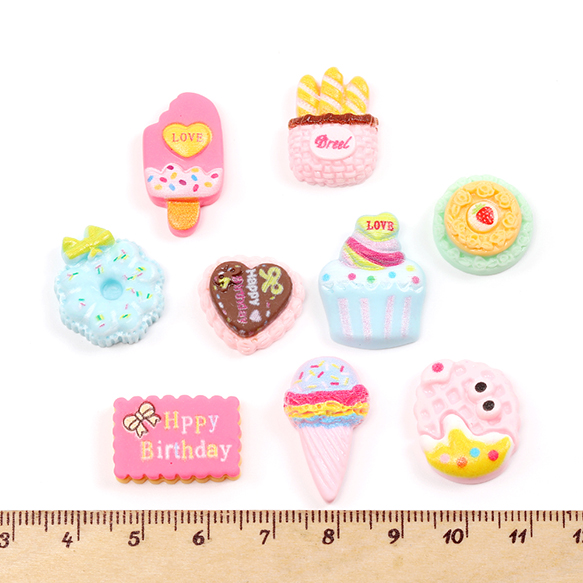 ミニチュアフードパーツ フードデコパーツ 樹脂製 食品サンプル貼付けパーツ アソート(10ヶ)