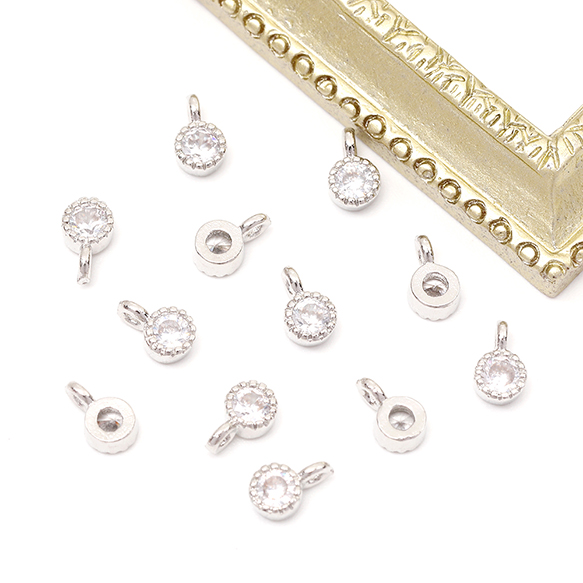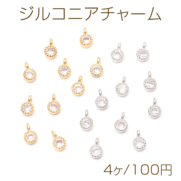 ジルコニアチャーム ラウンドチャーム 円形チャーム 丸型チャーム 1カン付き 約3×5mm(4ヶ)