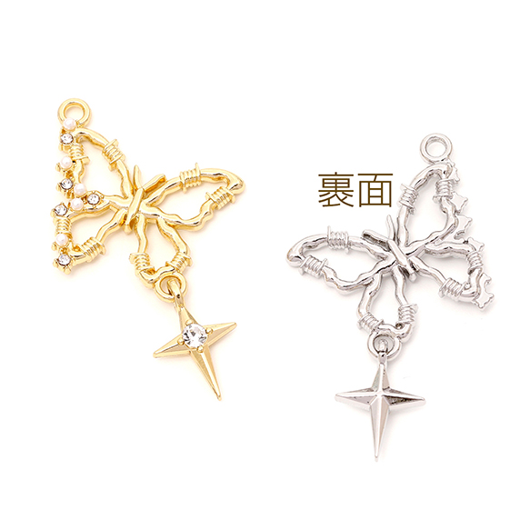蝶チャーム バタフライチャーム フラッシュスター付き パールとラインストーン付き 1カン付き 約24×42mm(2ヶ)