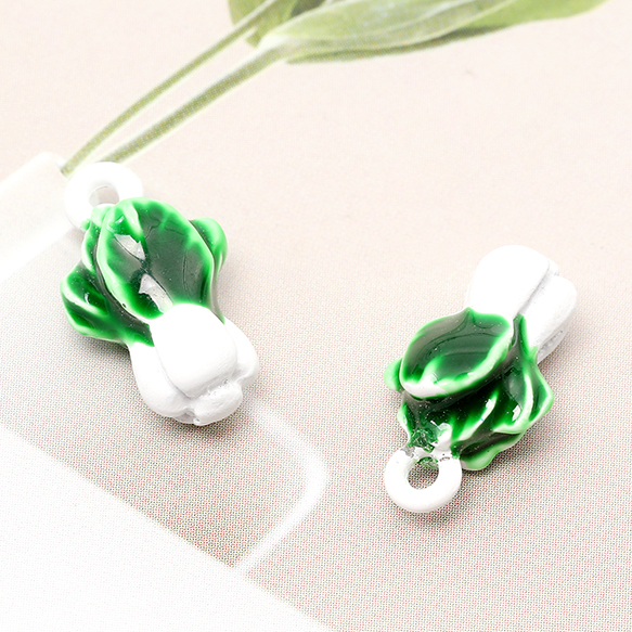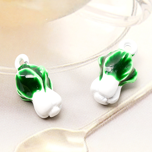 ミニチュアフードチャーム メタル製 食品サンプルチャーム フェイクフードチャーム 白菜 1カン付き 約8×15mm(2ヶ)