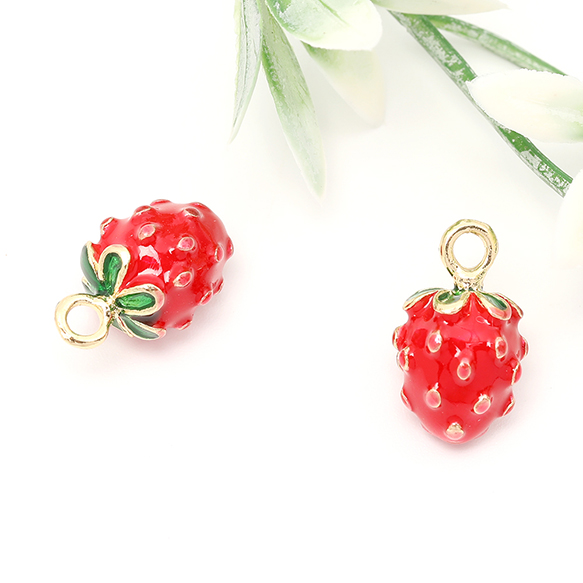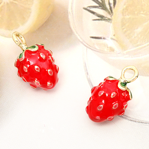 ミニチュアフードチャーム メタル製 食品サンプルチャーム フェイクフードチャーム いちご 1カン付き 10×16mm(2ヶ)