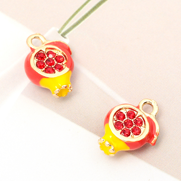 ミニチュアフードチャーム メタル製 食品サンプルチャーム フェイクフードチャーム ザクロ 1カン付き 約10×13mm(2ヶ)