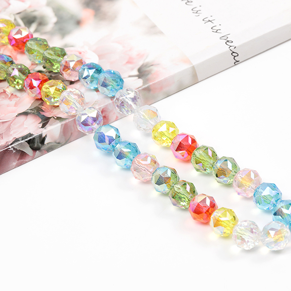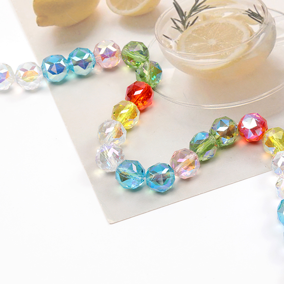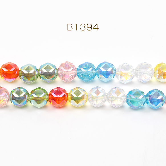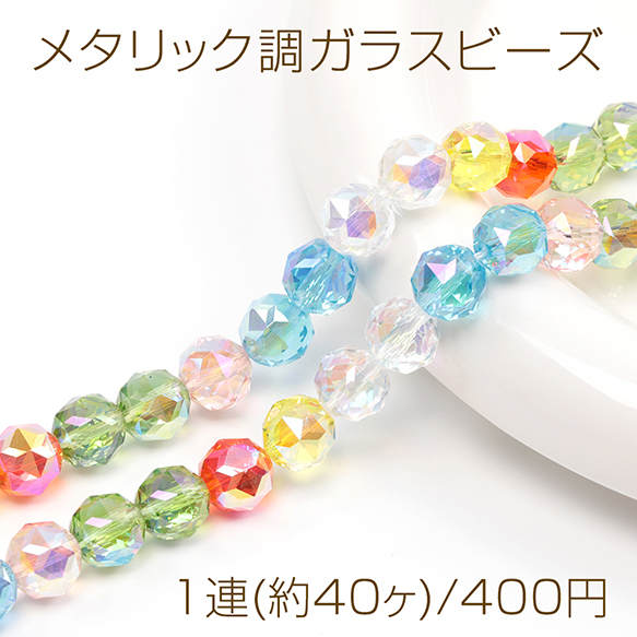 メタリック調ガラスビーズ メッキガラスビーズ ラウンドカット 通し穴あり オーロラカラー 約10mm 1連(約40ヶ)