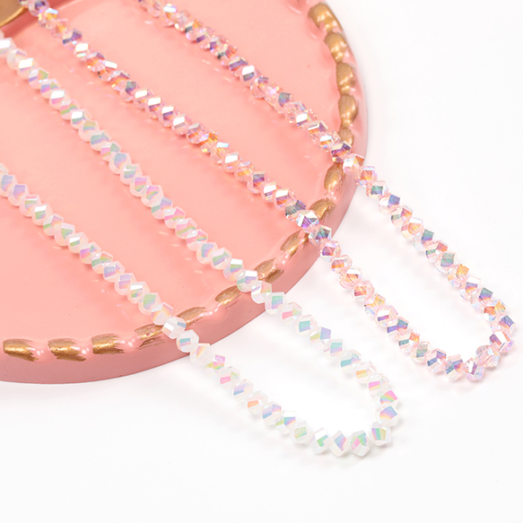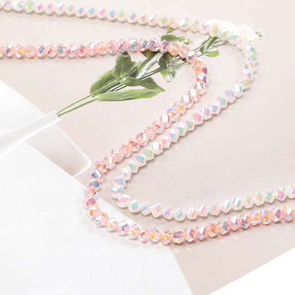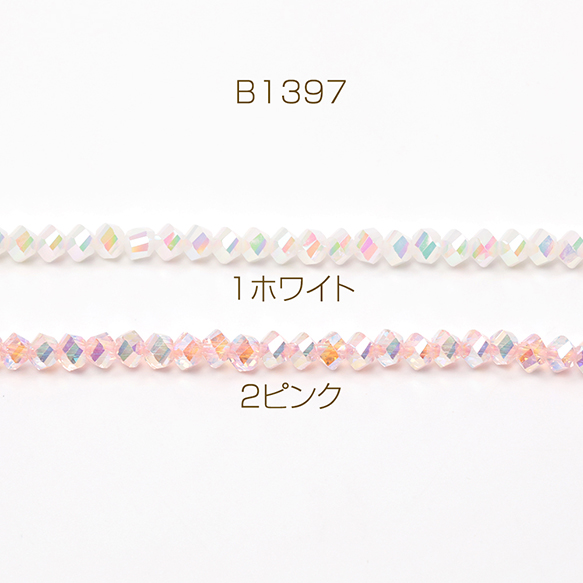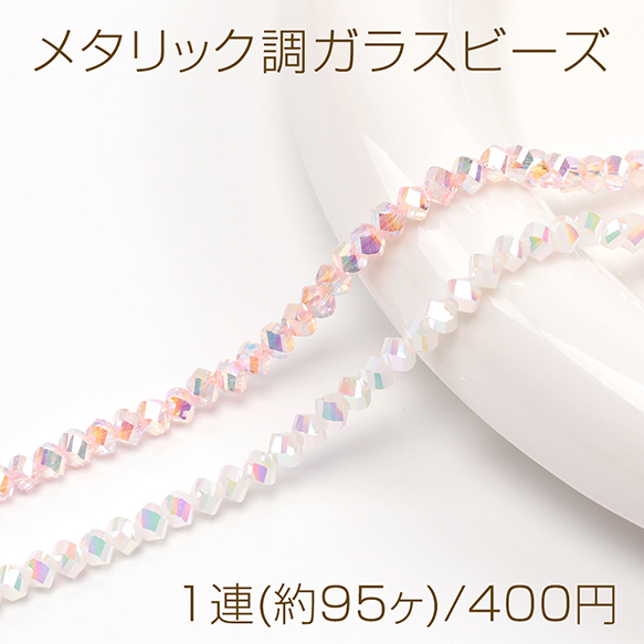 メタリック調ガラスビーズ メッキガラスビーズ ツイストカット 通し穴あり オーロラカラー 約4mm 1連(約95ヶ)