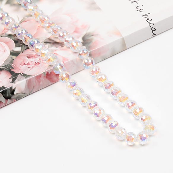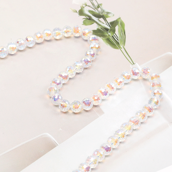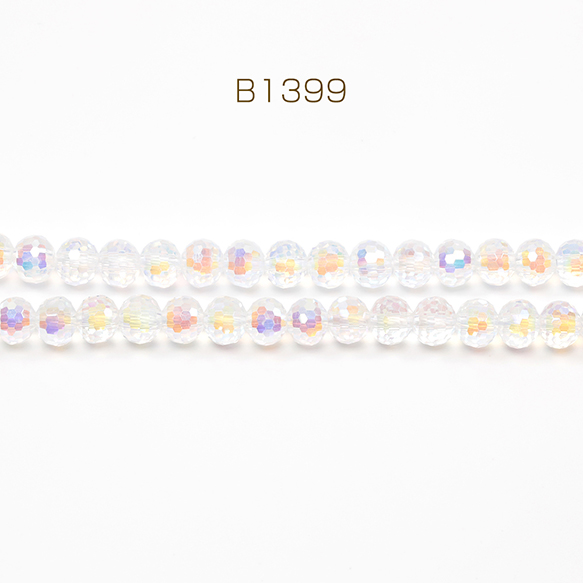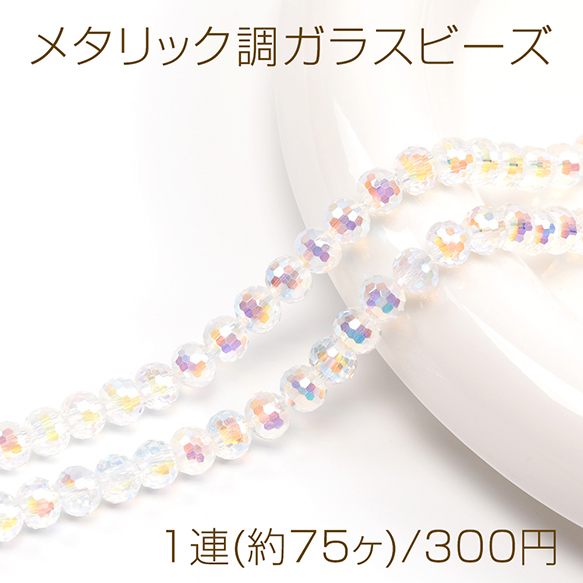 メタリック調ガラスビーズ メッキガラスビーズ ラウンドカット 通し穴あり オーロラカラー 約6mm 1連(約75ヶ)