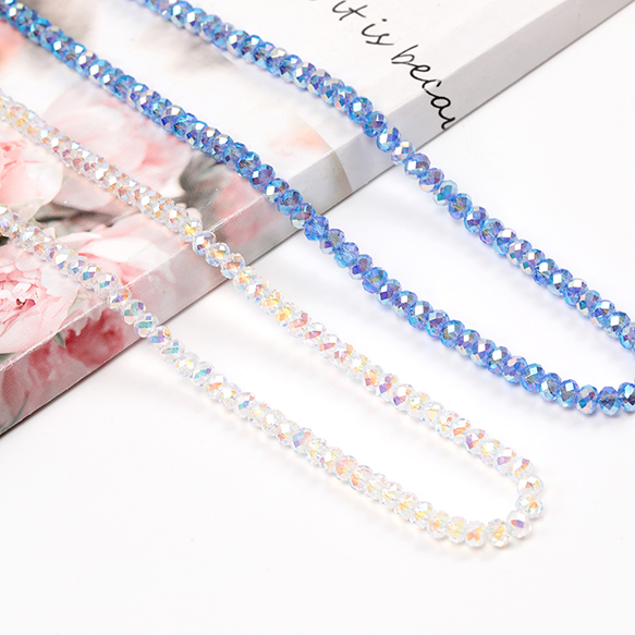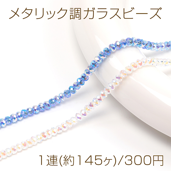 メタリック調ガラスビーズ メッキガラスビーズ ボタンカット 通し穴あり オーロラカラー 約3.5mm 1連(約145ヶ)