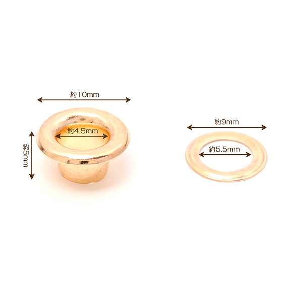 ハトメ金具 打込みハトメ 鞄 バッグ 靴 服飾 革小物金具 留め金具 ゴールド