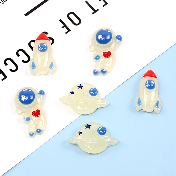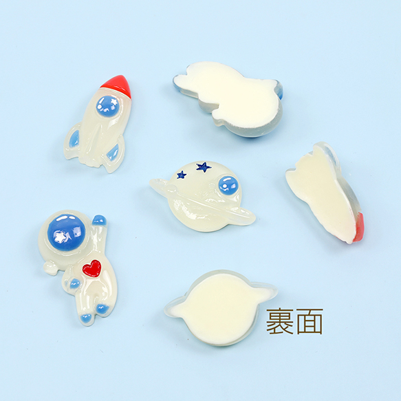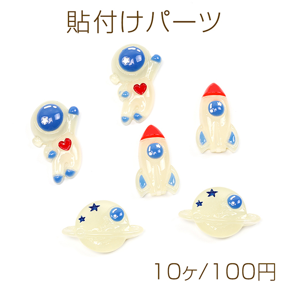 貼付けパーツ 立体型パーツ 宇宙飛行士 ロケット 土星モチーフデコパーツ 樹脂貼付けパーツ 樹脂カボション(10ヶ)